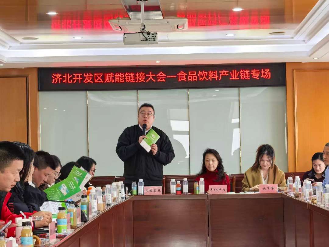 为深化开发区产业链内部合作,打造“一链一策”精准服务品牌,通过开发区搭建平台、市场主导运作的方式,推动食品饮料上下游资源整合,助力开发区企业发展。1月5日,在总部经济中心召开济北开发区赋能链接大会——食品饮料产业链专场。此次活动聚焦食品饮料产业协同发展,组织济阳本土企业齐聚一堂,通过产品展示、交流洽谈等形式,搭建企业沟通桥梁,精准对接合作需求,为区域食品饮料产业高质量发展注入新动能。济北开发区管委会副主任刘增恭,济阳区工信局副局长徐健,济北开发区经济发展局副局长何苗苗出席活动。