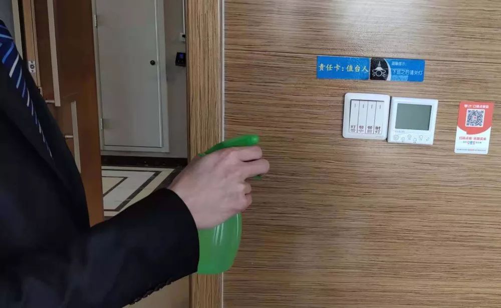 2.客人用过面盆、马桶、门把手,使用全能清洁剂进行消毒;