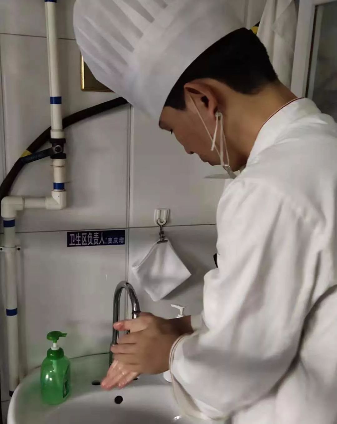 1、厨房备有消毒洗手液,厨师及其他需进入后厨的人员上岗前必须彻底洗手和消毒;