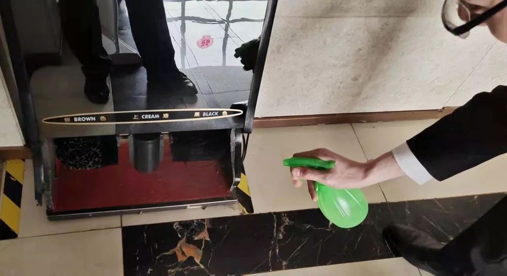 电梯轿厢:每天进行消毒工作,包括空气、扶手、电梯门等;
