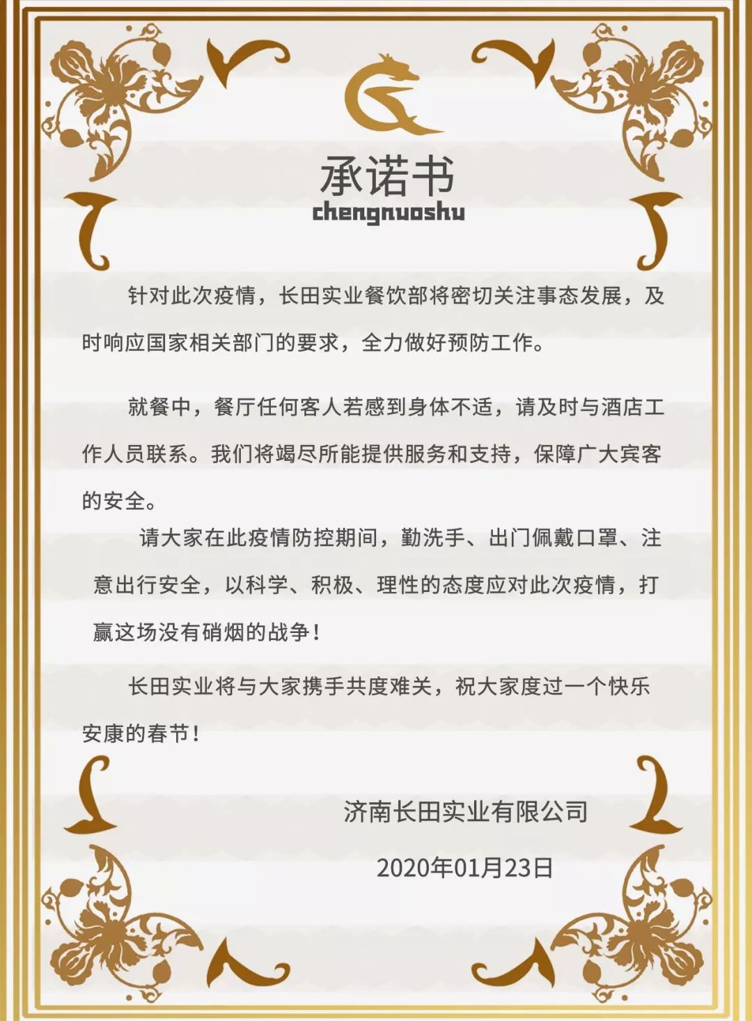 针对疫情长田实业密切关注时态发展,积极响应国家相关部门的要求针对近期新型冠状病毒感染肺炎的疫情,,第一时间为保障客人和员工的身体健康,出台了相应防控关爱措施。