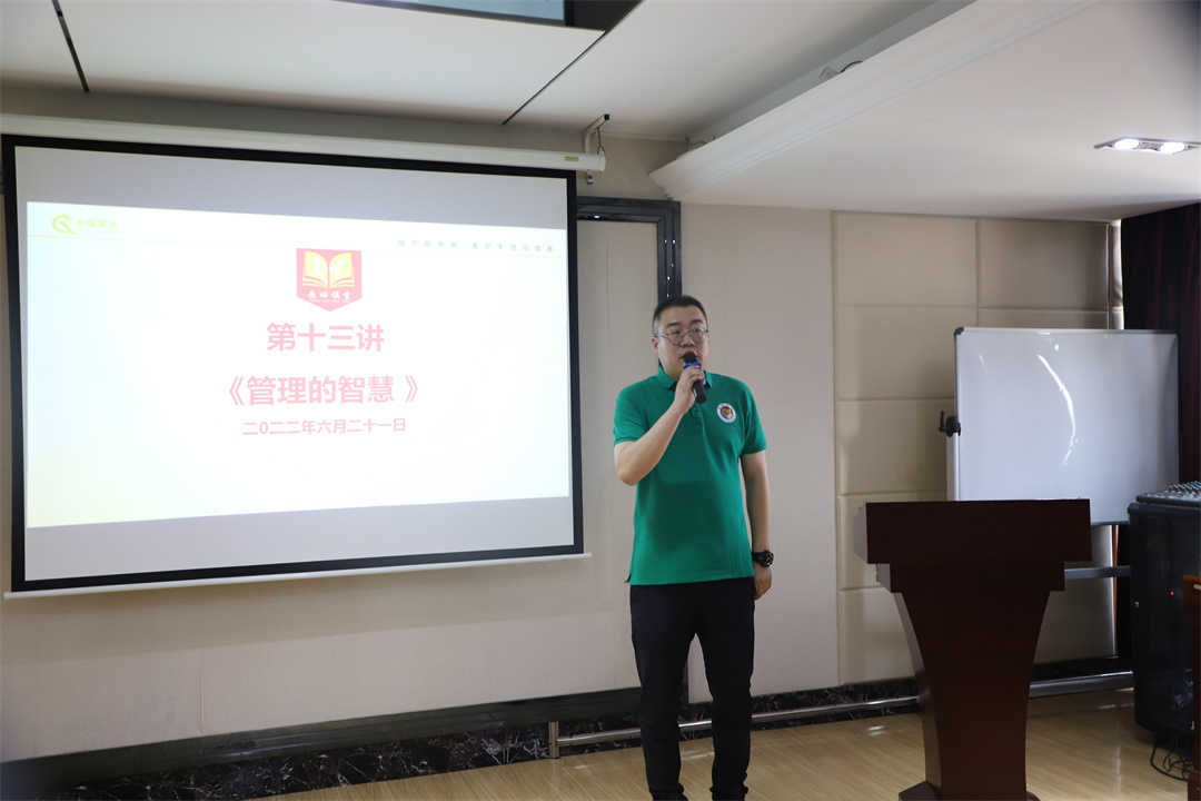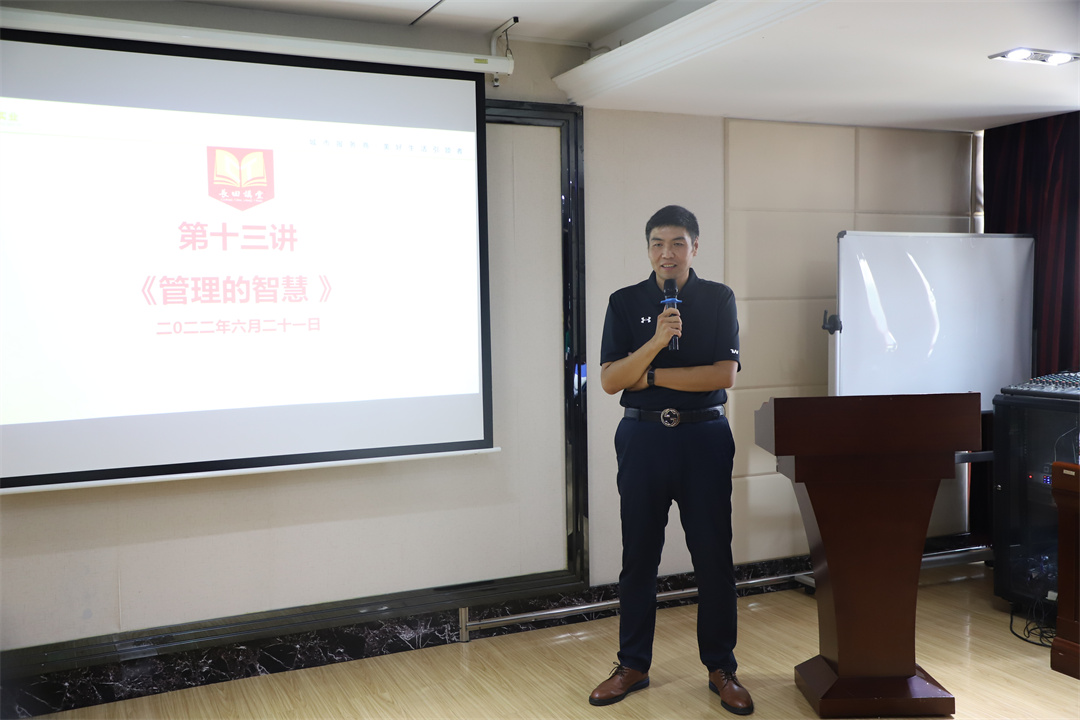 6月21日下午,长田讲堂第十三讲在勇建大厦三楼会议室举行。长田实业党支部书记、董事长张勇,副总经理朱宝刚、成峻志、侯淑兰,朱家片区改造项目副总经理周广武及公司各部门管理者、储备干部、员工代表约40人参加培训。
