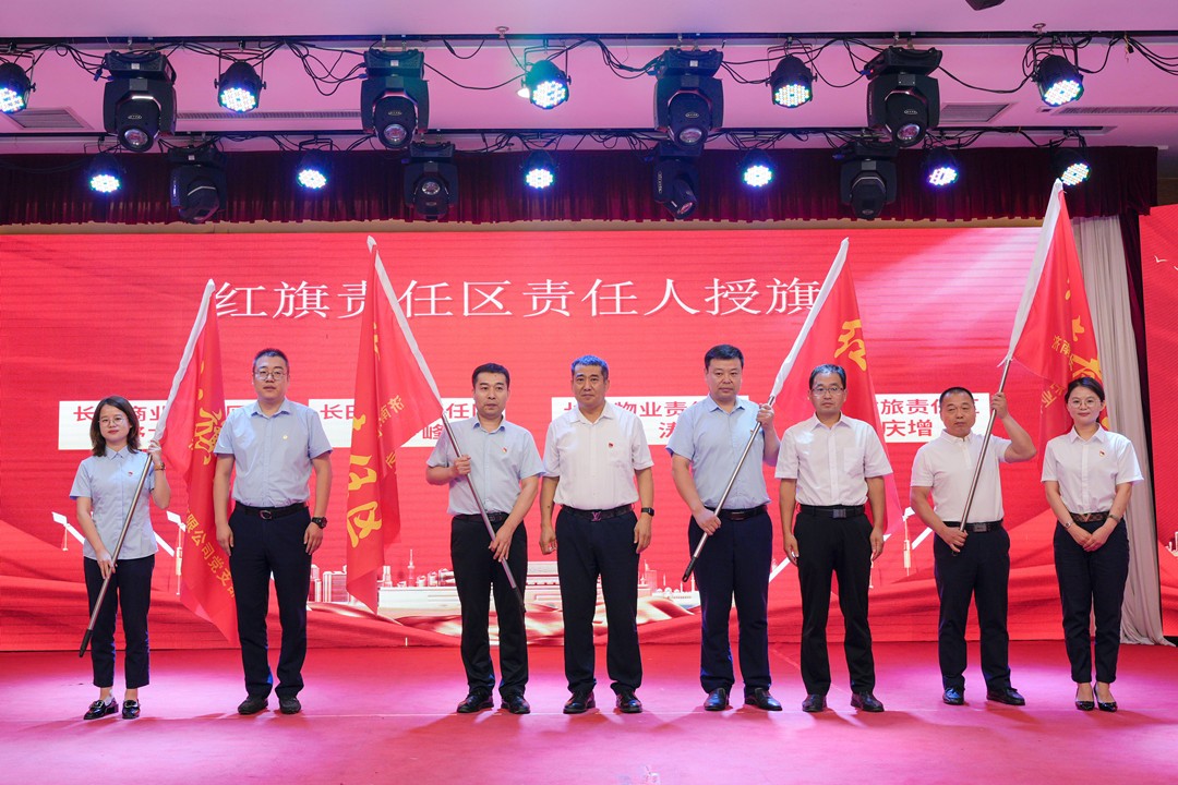 在党建品牌启动仪式上,张鹏书记、王云刚书记、苏卫东主任、张勇同志共同按动启动按钮,正式发布长田实业“善作善为 美好长田”党建品牌。长田实业党支部委员马海霞同志宣读《创岗建区工作实施方案》。会议上,由长田实业党支部“创岗建区”领导小组成员为红旗责任区负责人授旗。