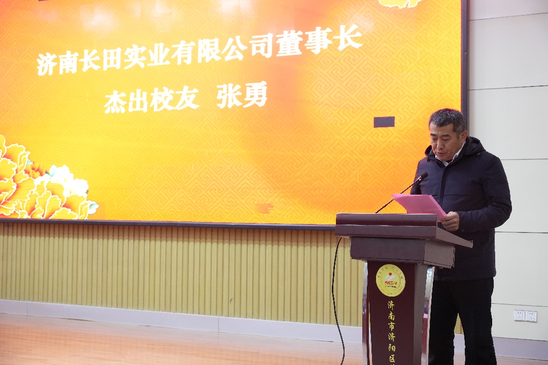 张总作为作为捐资代表讲话,他讲到,回到母校,就像回到了四十年前的中学时光,难忘孙秉鑫、安光茂两位老校长的谆谆教导,感念赵而水、张端奎等老师的悉心培养。更让他动容的是,济阳一中承载着家族三代人的情感与寄托,父亲曾在此执教,兄弟三人追随父亲脚步在此求学,女儿也曾踏入校园,续写着与母校的深厚渊源。结合自身经历,他为学子们分享了三点成长感悟:一是扎实根基方能茁壮成长,中学时代是积累知识、锤炼品格、培养韧性的关键时期;二是懂得感恩方能行稳致远,常怀感恩之心才能明晰方向、凝聚力量;三是胸怀家国方能格局开阔,要将个人理想融入国家发展洪流。他勉励同学们传承母校“永不满足、追求卓越”的校训精神,让青春在奋斗中绽放光芒。