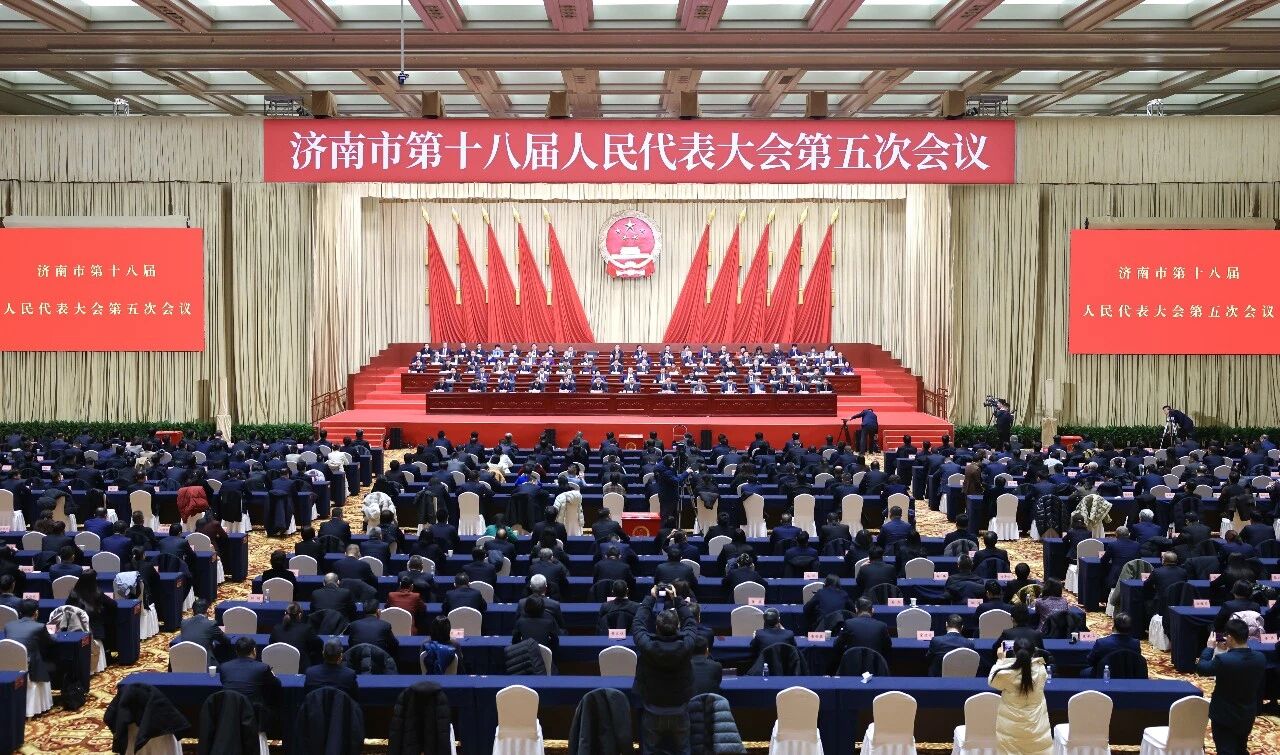 大会完成各项议程后,市委书记刘强作了讲话。他说,济南市第十八届人民代表大会第五次会议圆满完成各项议程。会议开得很成功,是一次高举旗帜、民主团结、求真务实、催人奋进的大会。他指出,2025年是济南发展进程中不平凡的一年,全市上下深入学习宣传贯彻党的二十大和二十届历次全会精神,坚决贯彻落实习近平总书记视察山东重要讲话和重要指示批示精神,以“项目提升年”为总牵引,项目化、工程化、清单化推进各项工作,推动强省会建设取得新成绩。