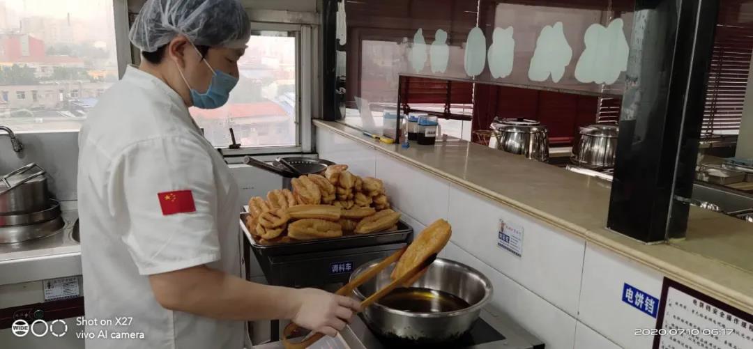 接待工作中所有菜品,均保证原料现购,现加工、现使用,部分蔬菜来自长田实业旗下易丰农业所生产的纯天然有机、无公害蔬菜,最大限度保证原材料安全。精心设计菜单,荤素搭配、营养丰富。从早餐的每一碟开胃小菜到午餐晚餐的全部菜品和面食都是厨房师傅亲自加工制作,杜绝使用半成品。为此,餐饮工作人员付出了更多的时间和精力,为了让监考老师早上吃上香酥可口的油条,厨房工作人员凌晨3点即到岗,和面、醒面、炸制,准时端上餐桌。对此,餐饮负责人谈到,“我们多花一点时间、多用一点心思、多费一点成本,这些都不要紧,只要监考老师吃得舒心,所有的付出都值得。”