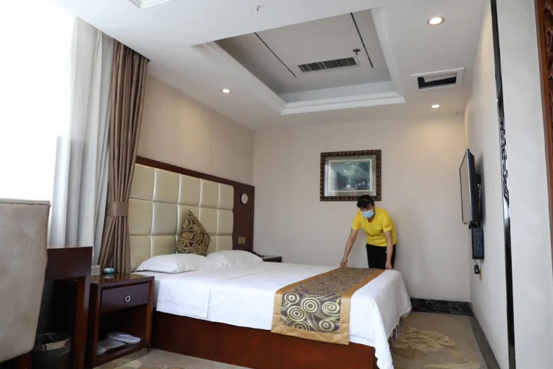 为提供最为安全舒适的住宿、就餐环境,长田物业对大堂、电梯等公共区域及客房,每天按照防疫要求进行消杀并逐个房间检查设施设备,确保网络、供电、热水等正常运行,同时制定了防突发情况处置应急预案,确保万无一失。小背篓主题酒楼对厨房、餐厅用具、餐具、食品柜、冰箱等每餐进行彻底消毒,对食品原料购进,生进熟出、食品留样、成品上桌等环节均明确专人把关。市场监管局食品安全监督工作人员相关负责人长驻小背篓主体酒楼巡查监督,对食材采购、验收、索证索票、食品加工、人员卫生、食品留样、清洗消毒等工作环节开展全程指导监督检查,进一步消除食品安全隐患。