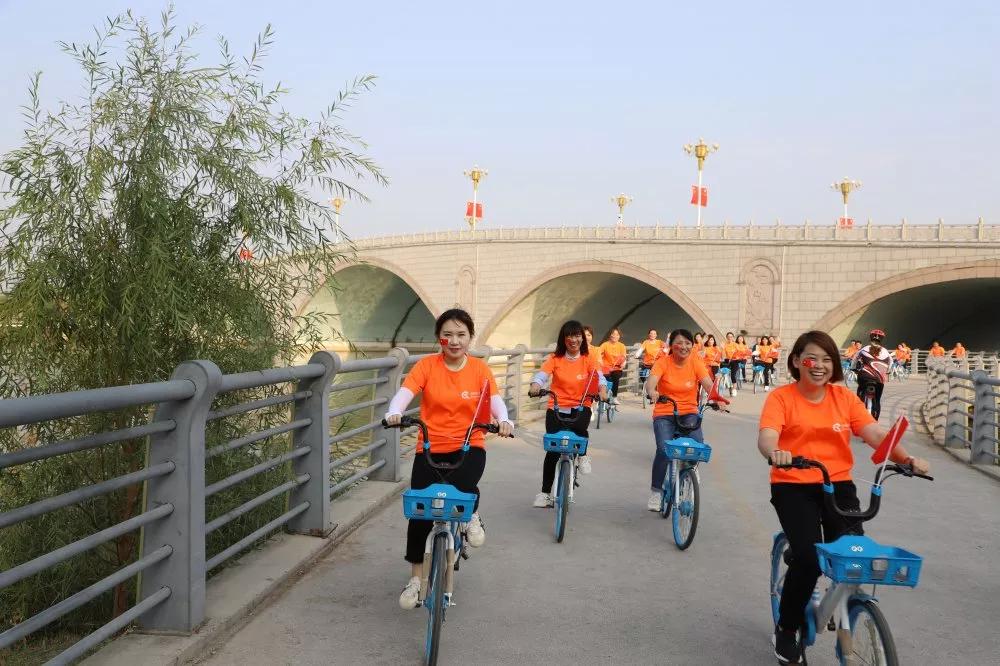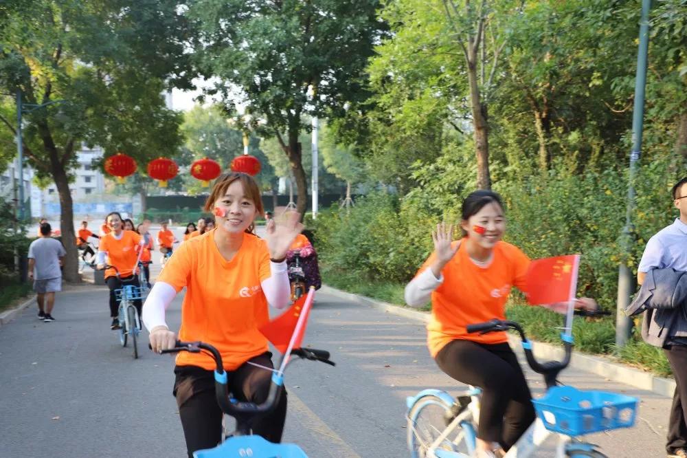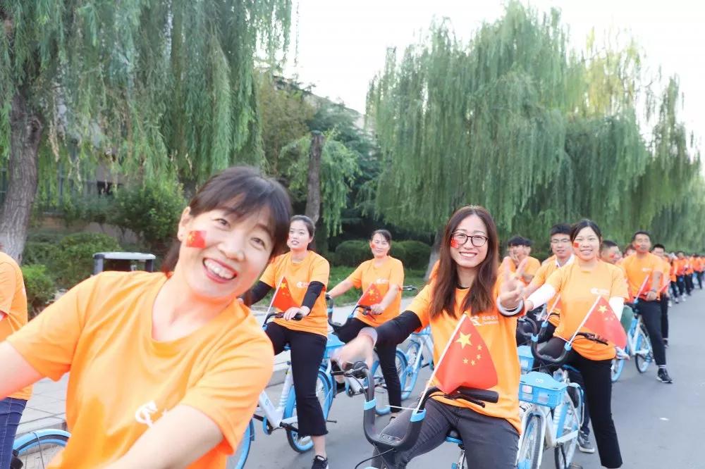 常务副总张玲为骑行活动致辞,她指出,本次活动是旨在庆祝祖国70华诞,意义非凡,希望长田家人们秉承长田宗旨,发扬奋勇拼搏的精神、展示昂扬向上的风采,为祖国献上一份厚礼。她郑重强调了骑行过程中的注意事项,并反复叮嘱,骑行中,安全是第一位的,务必确保全员平安达到终点。律动济阳,奋进长田。伴随着董事长张勇铿锵有力的号令,骑手们在一片欢呼声中,高喊着“为社会发展助力 为美好生活加油”的响亮口号,浩浩荡荡出发了。他们矫健而敏捷的身影穿梭在济阳的正安路、开元大街、澄波湖公园,多姿的色彩,宛如道道绚丽的彩虹。一路骑行,一路欣赏济阳的大美风景,感受浓厚的节日氛围。街道上、店铺上,目光所及之处都是大片大片的中国红,与湛蓝的天空、洁白的云朵、宽阔整洁的街道相映衬,构成大美济阳独特的翰墨画卷。走进澄波湖,亭台楼阁、清水碧波、凉风轻拂、诗情画意、美不胜收,此情此景,不禁令人由衷赞叹,大美济阳,壮美祖国大好河山,爱国之情油然而生!