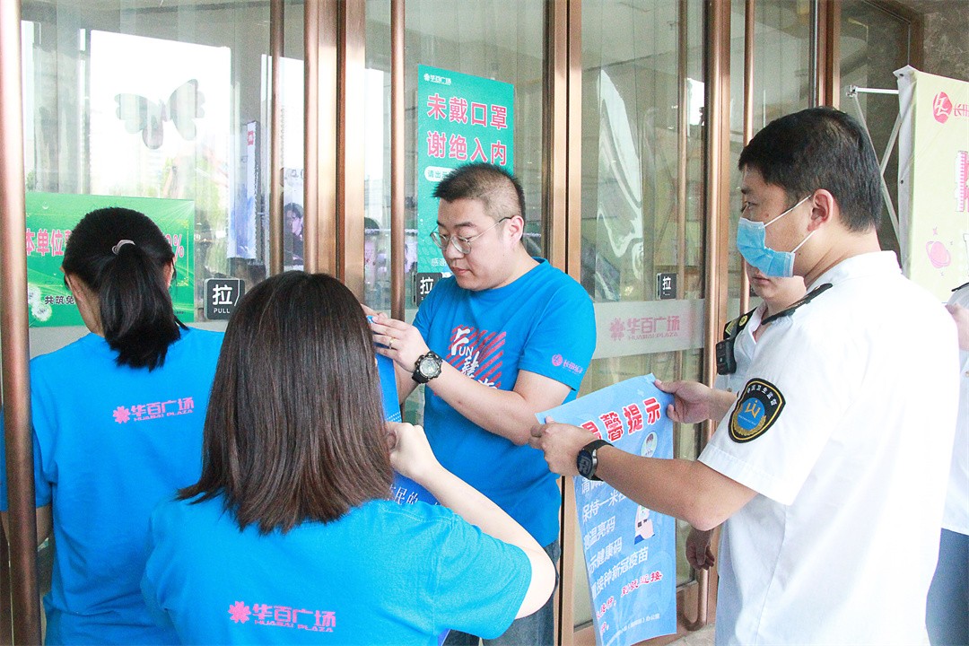 华百广场从疫情防控制度、商场内环境卫生、个人卫生防护、冷链食品要求、限流限距措施、应急处理措施等方面贯彻实施常态化疫情防控措施,并每日向商务信息中心提报本商场内工作人员的疫苗接种情况,共筑安全屏障。