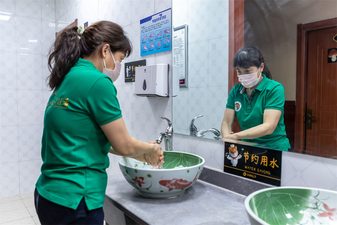 通过岗前三分钟检查提醒,严格要求工作人员按照疫情防控要求部署做好手部消杀、穿戴工装等。