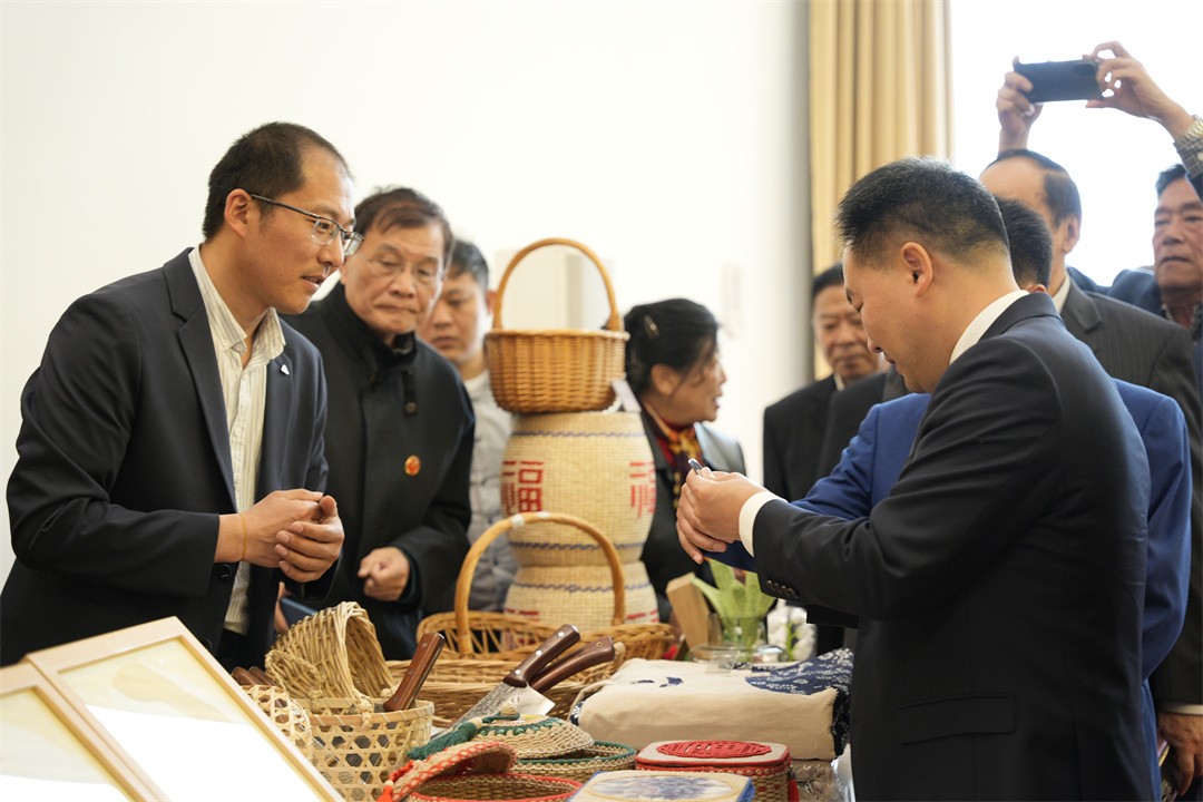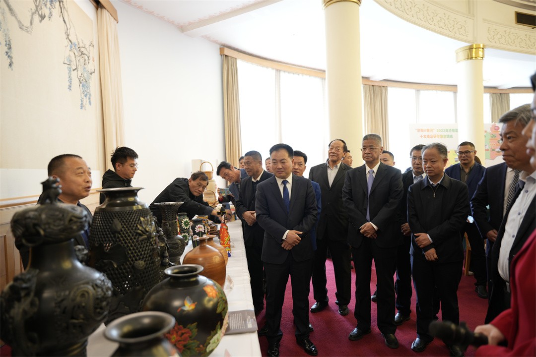 长田实践教育基地经理、济北手造展示体验中心经理、济阳地域历史文化研究促进会秘书长曹磊与市级非物质文化遗产龙山黑陶制作技艺代表性传承人、龙格黑陶副经理徐庆增为领导讲解济阳非物质文化遗产与地方特色产品。本次活动中所展示的济阳非物质文化遗产与地方特色产品均由山东手造济北展示体验中心提供与布展。