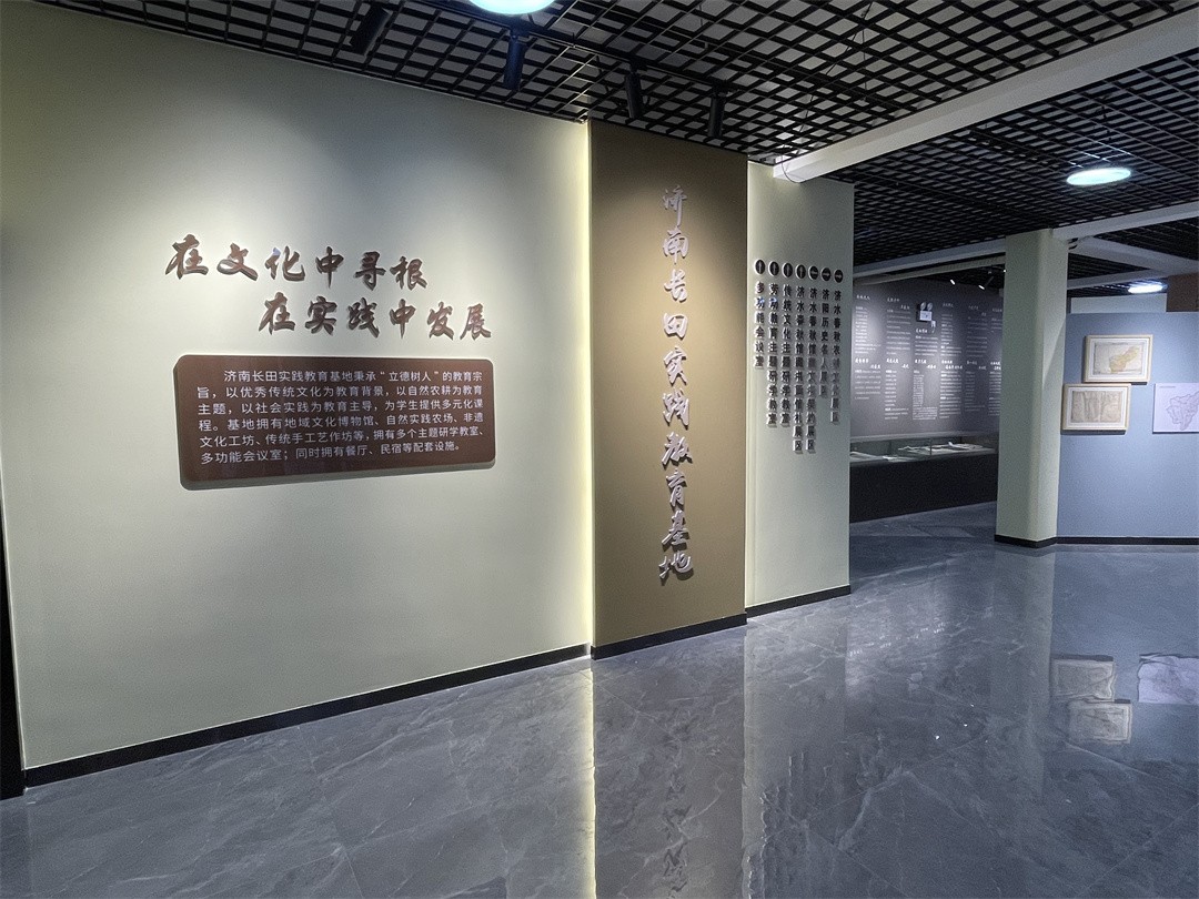 长田实践教育基地位于济阳街道董家村,总投资3000余万元。定位打造成为集旅游观光、劳动教育、农耕体验、非遗传承、红色教育、传统文化研学、现代民宿及餐饮为一体的文旅融合发展基地。目前拥有占地300余亩标准化农场,果园、稻田、蔬菜大棚和生态养殖设施齐全;建有700余平研学楼,主题实践教室多间;700余平省级非物质文化遗产龙格黑陶的非遗工坊一处;现代化食品厂一处;豆工坊、粉皮工坊等特色工坊设施多处;济水春秋历史文化博物馆一处,珍贵古籍、名人字画、农耕实物、皇帝御批等,藏品丰富多彩;同时基地内拥有完善的就餐和住宿配套服务设施。基地致力于传承非遗黑陶技艺,弘扬优秀传统文化。集黑陶研发、生产、销售于一体,以“传承非遗文化 激发创新活力”为发展理念,将传承和创新相结合,艺术和产业相融合,先后研发出吉祥宝鼎、五龙献瑞、中华福大葫芦等代表性作品,给济阳黑陶产业注入活力。基地立足济阳、辐射济南及其周边地区,为地方文化发展和乡村振兴提供产业平台,为广大游客和中小学生提供研学旅游、教育培训、团建、餐饮、住宿等一站式服务。