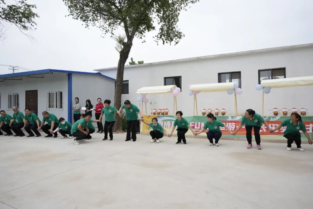 参观结束后,大家整队集合,来到永庆昌加工中心的院落内,开展趣味团建游戏。此环节中,特别精心设计了破冰游戏,通过轻松愉悦的互动很快调动起大家的情绪,让大家更加全身心地投入到接下来的游戏PK中,各位组员都摩拳擦掌 ,跃跃欲试,准备为团队的荣誉而战。