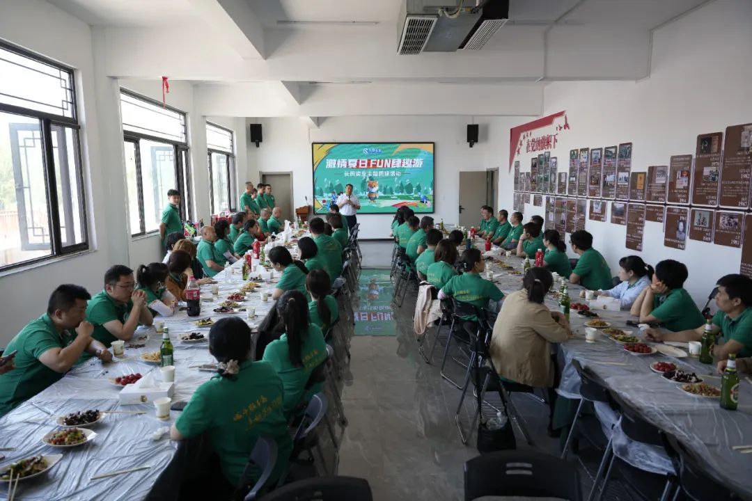 在基地多媒体教室,大家共赴一场欢乐惬意的“团建盛宴”。餐食为易丰居特色农家炖菜,还原农家味。采用长桌百人宴、自助就餐形式,增强彼此之间的沟通交流。在餐中的游戏环节,大家喝啤酒、吃西瓜,轻松而自在、快乐而悠闲。